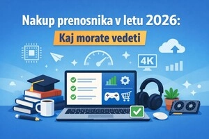 Iščete prenosnik v letu 2026? Preverite, kako izbrati pravi procesor, RAM, SSD in zaslon glede na uporabo – za šolo, delo, doma ali gaming.